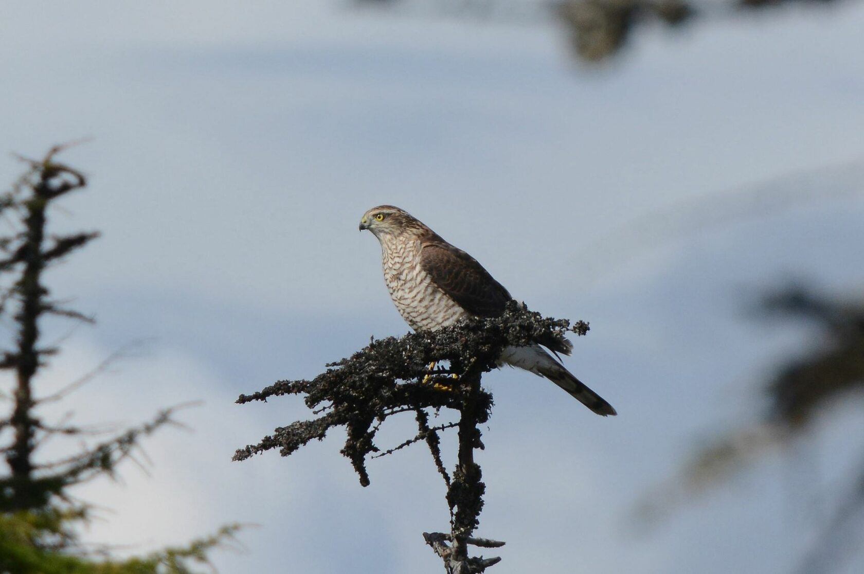 Особенности биологии. Плотность селения в горных распадках и долинах североохотских рек примерно одна пара на 10 км2. К размножению приступает в конце мая, сооружая гнезда на деревьях (обычно лиственницах) на высоте 6−12 м. В завершенных кладках 3−6 яиц. Птенцы появляются во второй половине июня и остаются в гнезде в течение 5−6 недель — до начала августа. Преимущественный орнитофаг — добывает птиц небольшого размера (рябчики, кулики, дятлы, воробьиные); в дополнение к птицам ловит лесных полевок и бурундуков. Осенний пролет вдоль охотского побережья проходит в середине сентября; в это время перепелятник становится одним из наиболее многочисленных видов хищных птиц.