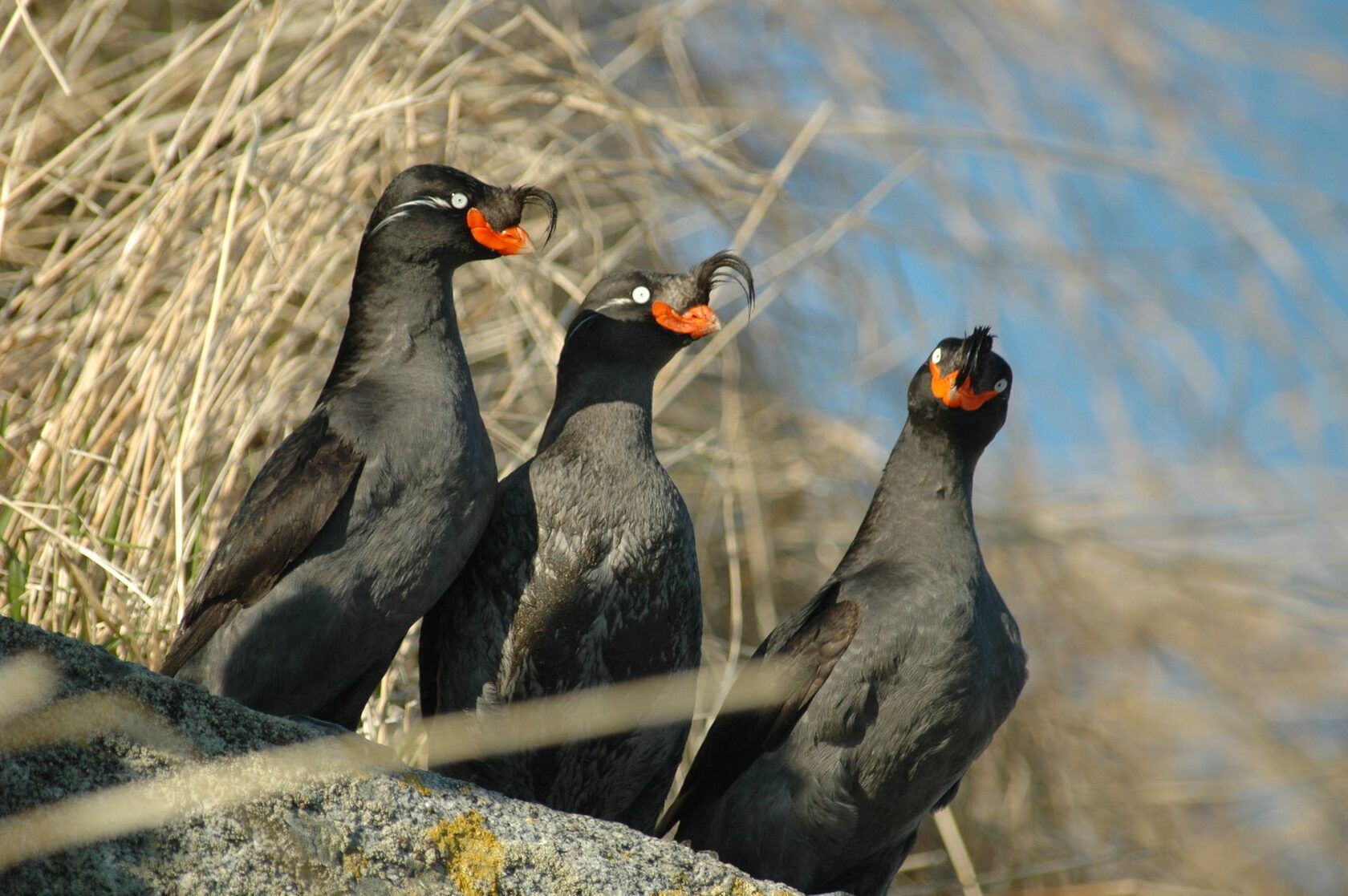 Особенности биологии. Общая численность вида около 4,5 млн особей, из которых примерно половина обитает в Азии. Самые крупные колонии (свыше 500 тыс. пар) расположены на островах Ратманова, Матыкиль и Талан. В северной части Охотского моря появляются вблизи гнездовий в конце апреля — начале мая. Распределение пар по гнездовым участкам происходит в середине мая еще до того как сойдет снег. Токование и спаривание — в конце мая. В это время наблюдается массовое «роение» конюг в утренние и вечерние часы. Кладки появляются в конце мая — начале июня, в них одно белое яйцо овальной формы. В обогреве кладки (34−37 дней) принимают участие оба родителя. Массовое вылупление птенцов происходит в первой половине июля. Основная пища птенцов — пелагические беспозвоночные (эвфаузиды, копеподы). Родители летают за кормом за 50−70 км и несут его в подъязычном мешке, который вмещает до 25−30 г планктона. С середины августа 5−6-недельные птенцы уходят в море.