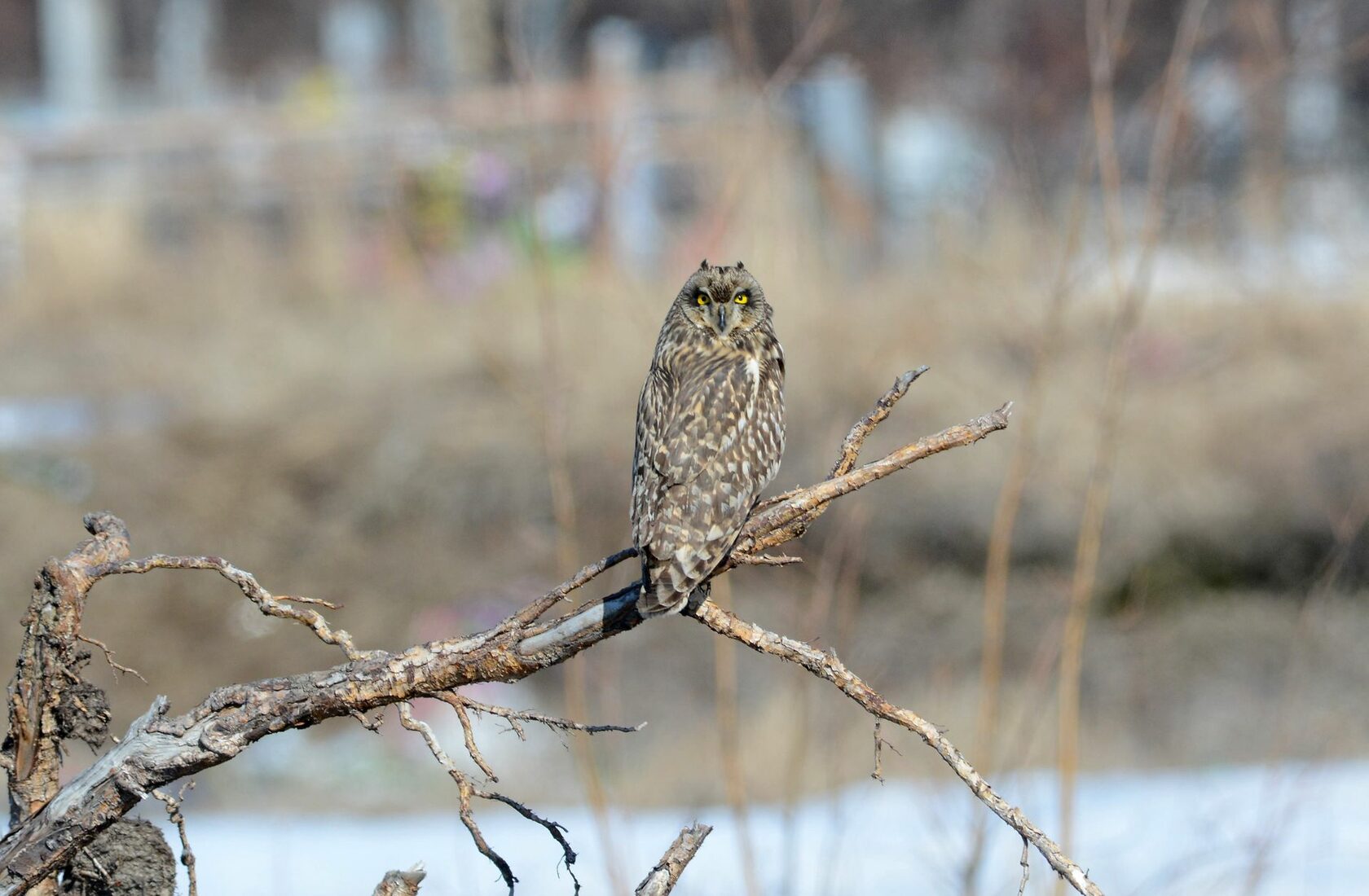 Полевые признаки. Некрупная сова (400−450 г) рыжевато-бурой окраски с темными пятнами на спине и продольными пестринами на груди. Лицевой диск хорошо выражен, клюв буровато-черный. Радужина желтая, глаза окантованы темными перьями. Подбородок и широкие окологлазничные полосы, переходящие в «брови», белого цвета. Крылья относительно длинные (размах 90−100 см), полет легкий, бесшумный. Лапы до когтей опушены. В полете заметны темные пятна в основании маховых перьев. Часто активна в дневное время.