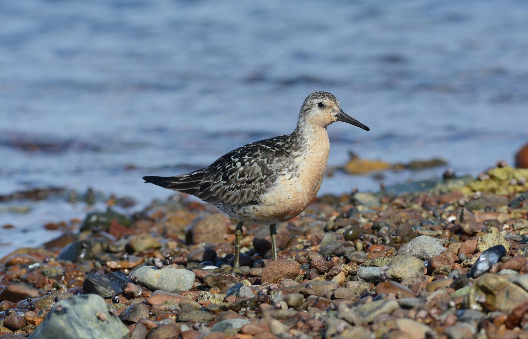 Полевые признаки. Крупный песочник (масса 135 г) с темным прямым клювом и относительно короткими оливково-желтыми лапами. В брачном пере грудь и спина красно-каштановых тонов. Спина серая с черными и охристыми пятнами. Зимой оперение однотонно-серое со светлочешуйчатой окантовкой перьев. Молодые птицы отличаются охристым налетом и темными пестринами вдоль шеи и на груди. Крылья острые, длинные, полет быстрый и сильный.
