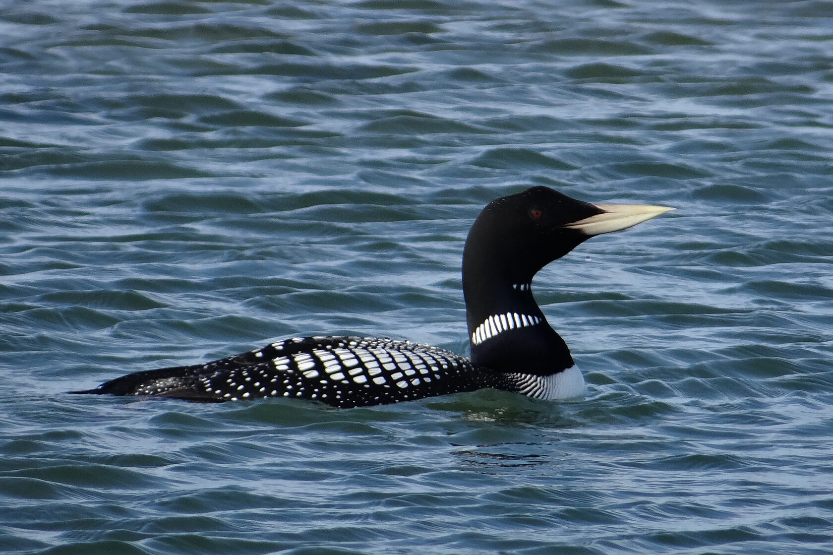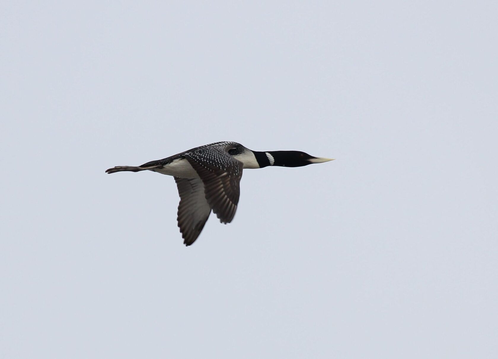 Полевые признаки. Очень крупная птица массой до 5−6 кг. Голова и шея иссиня-черные, вокруг шеи белое пятно с черными вертикальными полосками; верх тела черный с белым клетчатым рисунком на плечах, нижняя часть тела белая. Клюв светлый, цвета слоновой кости. Крик белоклювой гагары характерный, напоминает лошадиное ржание.