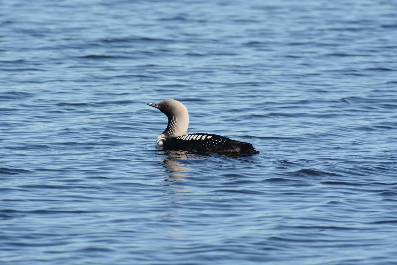 Полевые признаки. Немного меньше чернозобой гагары (масса 1700−1800 г), но окраской оперения и поведением очень на нее похожа. Отличается светло-серым, почти белым затылком, горловое пятно отливает фиолетовым. Кроме того у плавающих птиц белые бока тела не видны. Голос более высокий и менее протяжный.