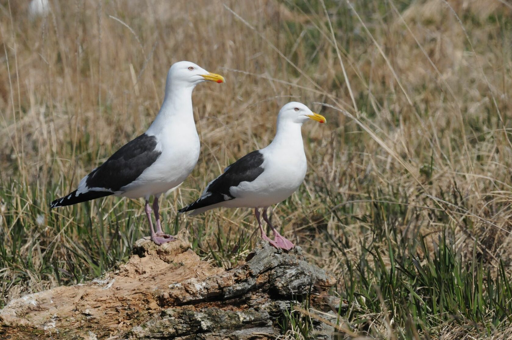 Полевые признаки. Крупная морская чайка (1−1,7 кг) с розовыми лапами, желтым клювом и красным пятном на подклювье. Голова, шея, грудь и брюхо белые. Спина и верх крыльев аспидно-серые. Концы крыльев белые с черным рисунком. Оперение молодых птиц пятнисто-бурое, клюв темный, лапы грязновато-розовые.
