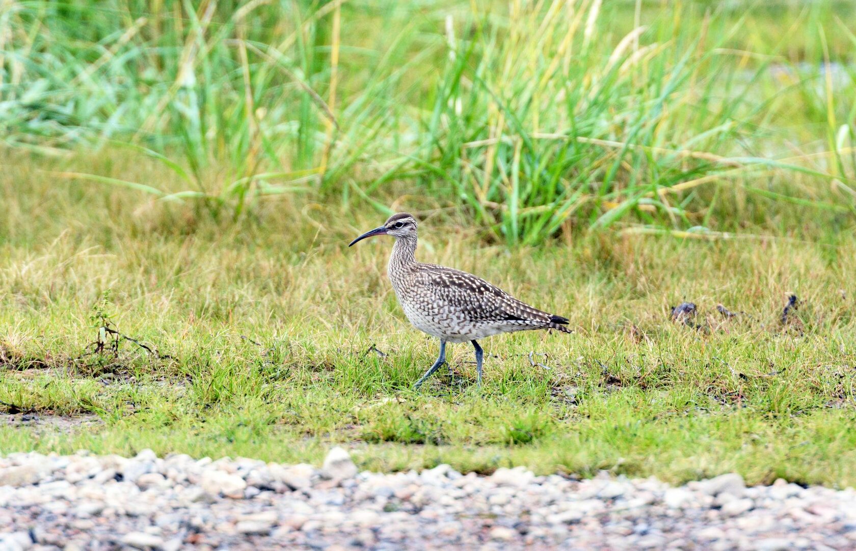 Полевые признаки. Кулик средней величины (350−450 г) с длинным изогнутым клювом и черным теменем, разделенным надвое светлой продольной полоской. Спина буровато-серая с охристой пятнистостью. Шея, грудь и бока желтовато-белые с частыми темными пестринами. Крылья длинные и острые. Ноги сероватые.