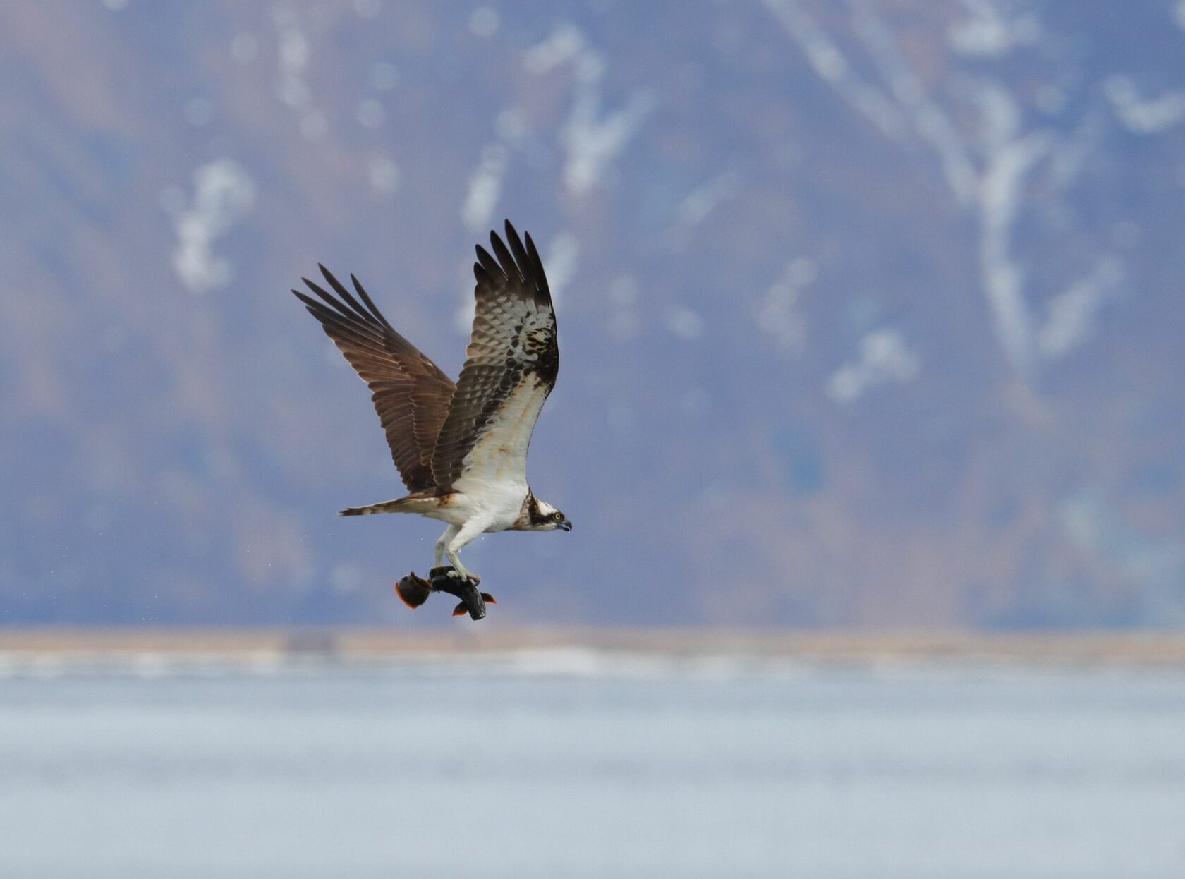 Места обитания и биология. Устраивает гнезда в долинных лесах с чистыми реками, богатыми рыбой, или вблизи морского побережья в местах впадения рек. Весной на реки прилетает во второй половине мая или даже в начале июня, около морского побережья появляется с начала мая. Питается рыбой, ныряя за ней с лету в реку, озеро или в море на мелководье. Молодые обычно покидают гнездо в конце августа, но даже после этого долго возвращаются в него для отдыха и ночевки. Накануне замерзания водоемов, как правило, до начала октября, скопы откочевывают к местам зимовок.