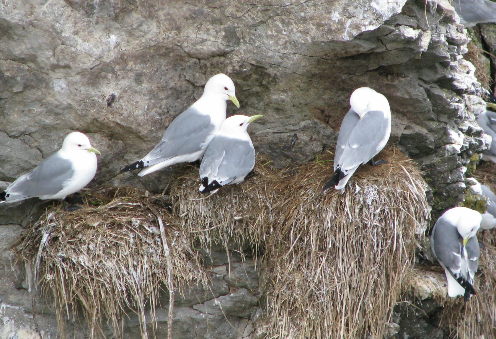 Особенности биологии. Количественно превосходит всех других чаек. Наиболее крупные колонии расположены на о. Верхотурова, Ямских островах и о. Талан. Приступает к размножению в 3−4 года. Появляется на гнездовьях в конце апреля — первых числах мая. Поселяется на уступах отвесных скал, сооружая гнезда из сухой травы. В Северном Охотоморье свежие кладки появляются с середины июня по конец июля. В завершенной кладке 1−3 яйца светло-серого цвета. В насиживании кладки (25−29 дней) и выкармливании птенцов участвуют оба родителя. Птенцы появляются примерно в середине июля и покидают гнездо на 35−40-й день (конец августа). Питается мелкой рыбой (мойва, песчанка, молодь сельди и наваги) и беспозвоночными (эвфаузиды, изоподы, крылоногие моллюски), которых добывает с поверхности моря. Часто кормится на литорали, исследует выбросы моря и свалки, сопровождает рыболовецкие суда.